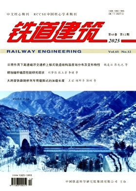 魏凌云;彭也也;赵春发;娄会彬;龚俊虎;太阳辐射作用下高速磁浮板式轨道梁的温度分布不均匀,容易引起变形、开裂,须在轨道设计中考虑温度的影响。本文基于热传学理论,建立了高速磁浮新型板式轨道-桥梁耦合模型并进行了验证;对其进行一天内瞬态热分析,得到了日照辐射荷载作用下板式轨道-桥梁的温度场分布特性;进而探究了瞬态热作用下结构的垂向、横向变形规律。结果表明:板式轨道-桥梁结构表面温度最大值为53.7℃。日照升温温差作用下,轨道-桥梁的竖向、纵向变形明显,最大值分别为3.59、2.87 mm,最大横向变形仅1.26 mm;板式轨道悬浮面上拱变形明显,最大达3.5 mm,而横向变形相对较小。竖向日照反温差作用下,轨道和桥梁竖向下挠变形明显,跨中截面下挠变形最大,为2.6 mm,横向变形相对较小;轨道悬浮面竖向变形较为明显,最大为1.96 mm。温度梯度引起的变形均未超过规范限值。